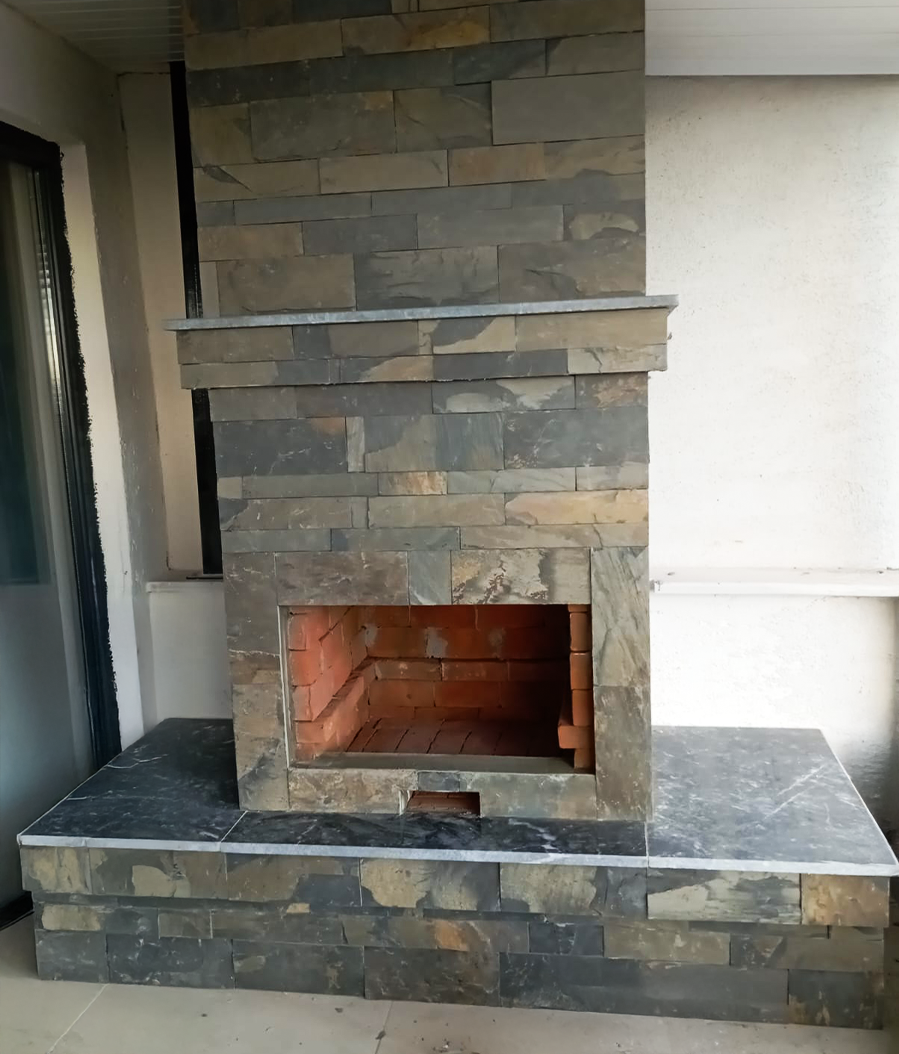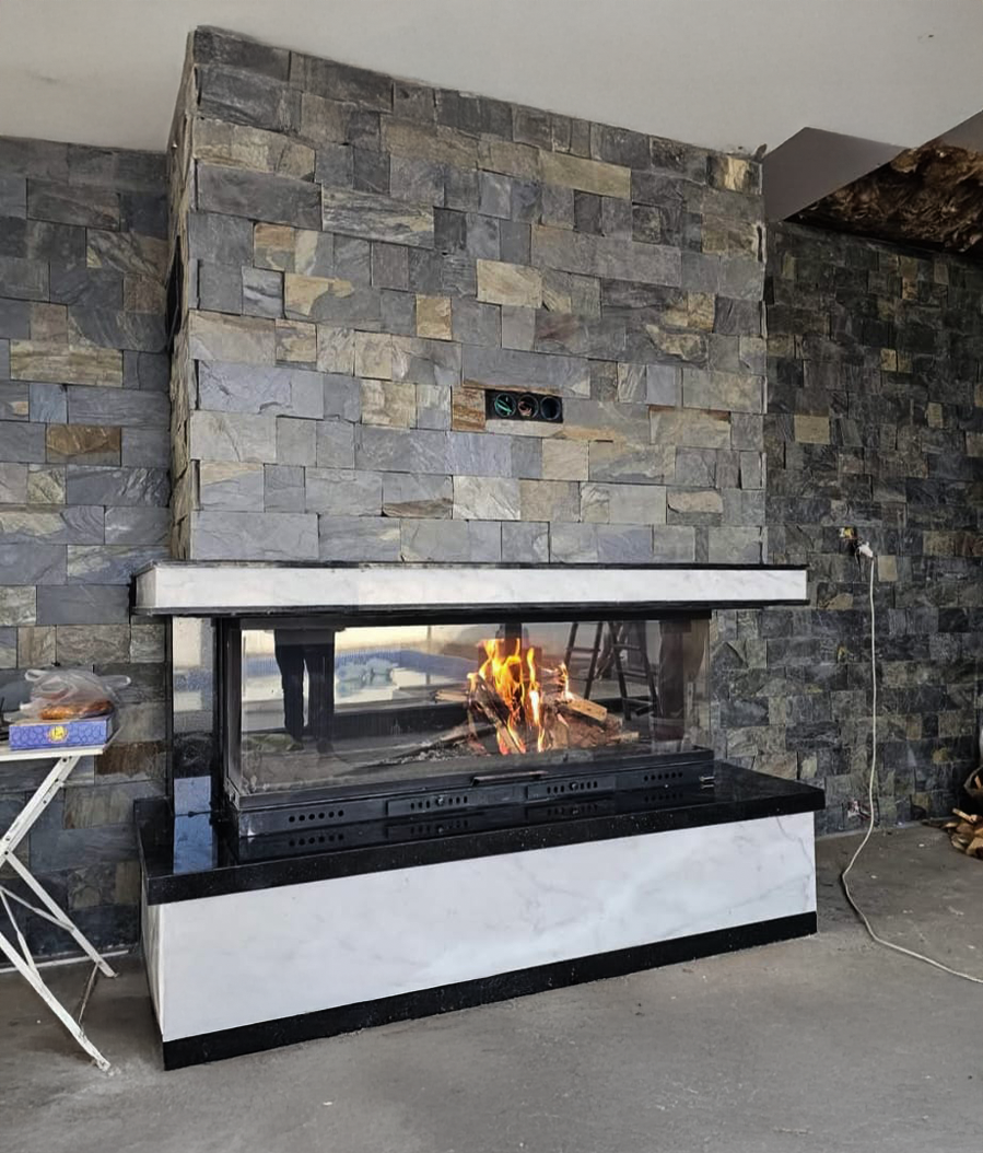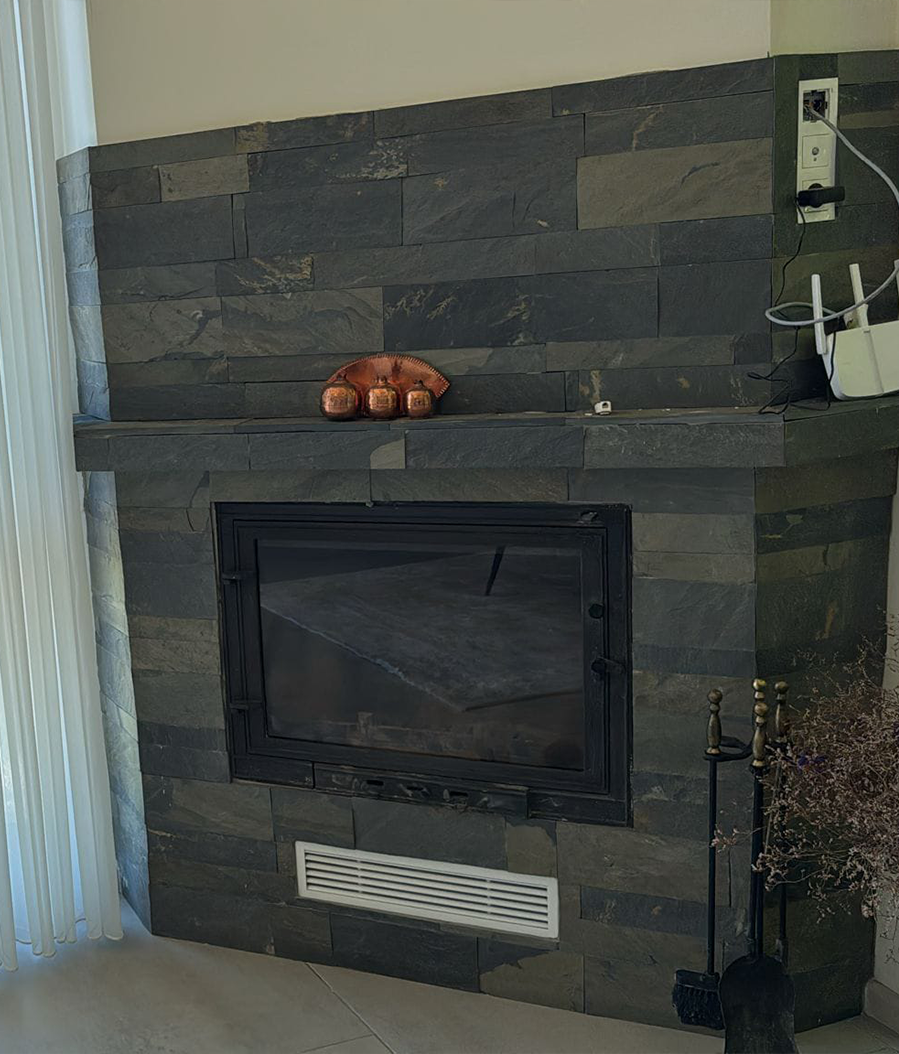 Talk Slate’in iç cephe uygulamaları, yaşam alanlarına zarif bir dokunuş getirir. Duvar kaplamaları, şömine çevreleri, kolon giydirmeleri ve dekoratif paneller gibi detaylarda doğal taşın dokusu estetik bir derinlik oluşturur. Hem modern hem klasik tasarımlara uyum sağlar; mekânın kimliğini güçlendirir.
